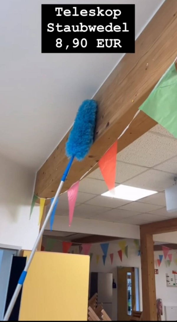 Merkmale: Staubwedel aus 100% Mikrofaser, biegsam, Farbe: blauTeleskopstiel, Aluminium, Länge max. 120 cm.Einsatzbereich Unterhaltsreinigung.